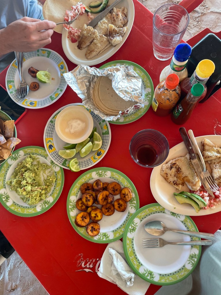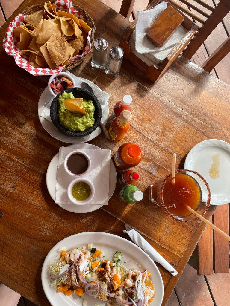 Maten förresten. Maten! Vi äter jättegott, även om det absolut är rätt turistigt här och inte kanonpriser (dvs som i resten av Mexico) så är det jättebra. Tacos, tacos, tacos. Ceviche. Guacamole. Totopos.