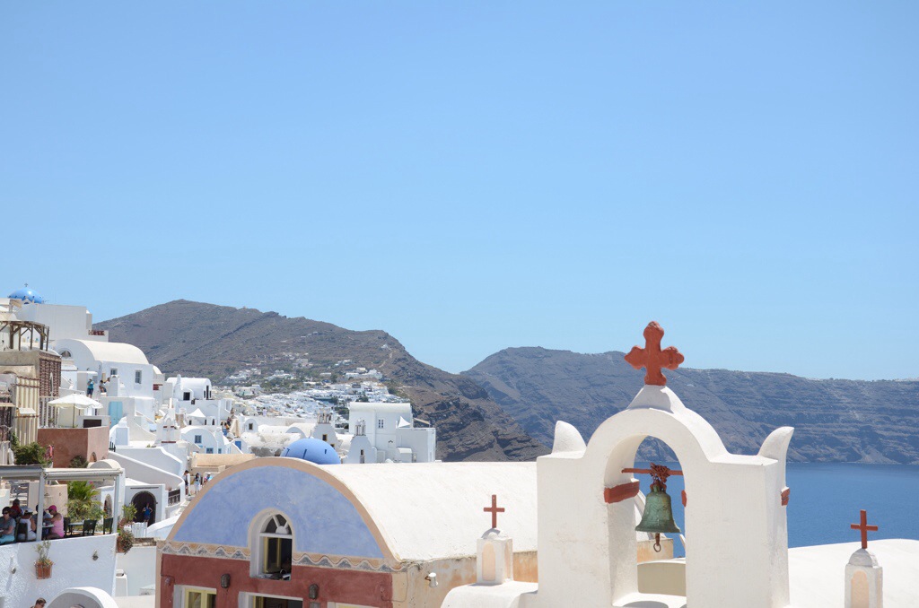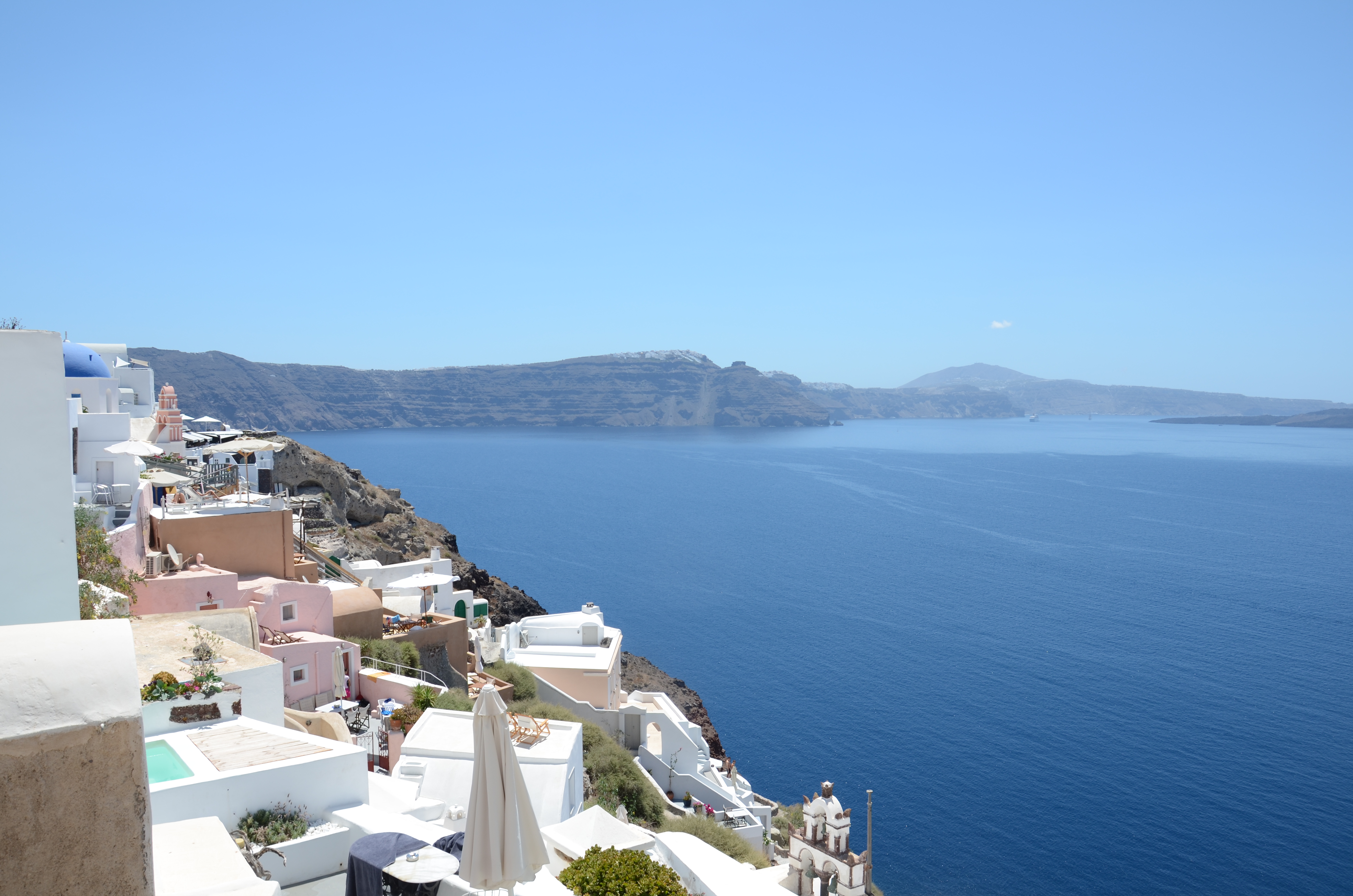 Santorini är fantastiskt! Vackert som en saga är vulkanön och det lever upp till sitt rykte som vykortsmotiv. En vulkanö, halvmåneformad efter ett utbrott som gjorde att mitten sjönk (sägs kunna vara Atlantis) med stränder av lava, blå och vita hus, solnedgång och soluppgång i havet… Lokalbussarna går utmärkt och vi har gjort utflykter runt hela ön. Har fotat massor och kommer ett försök till bildkavalkad från hotellets tappra wifi, medan vi letar hotell för slutet av veckan under pausen av VM-finalen.