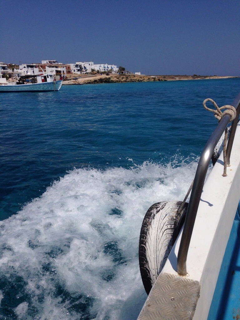 Dagen innan vi skulle åka vidare från Santorini mot en ö på väg mot Athen men samtidigt som det visade sig vara svårt hitta boende i vår budget och båtar som passade fick vi ett tips från några andra svenskar på vårt hotell som båtluffat i över tio år: Koufonisia, en liten ö i små kykladerna utanför Naxos. De har varierat öarna genom åren och sett mycket men återvänder alltid hit varje gång också. Vi förstår varför.