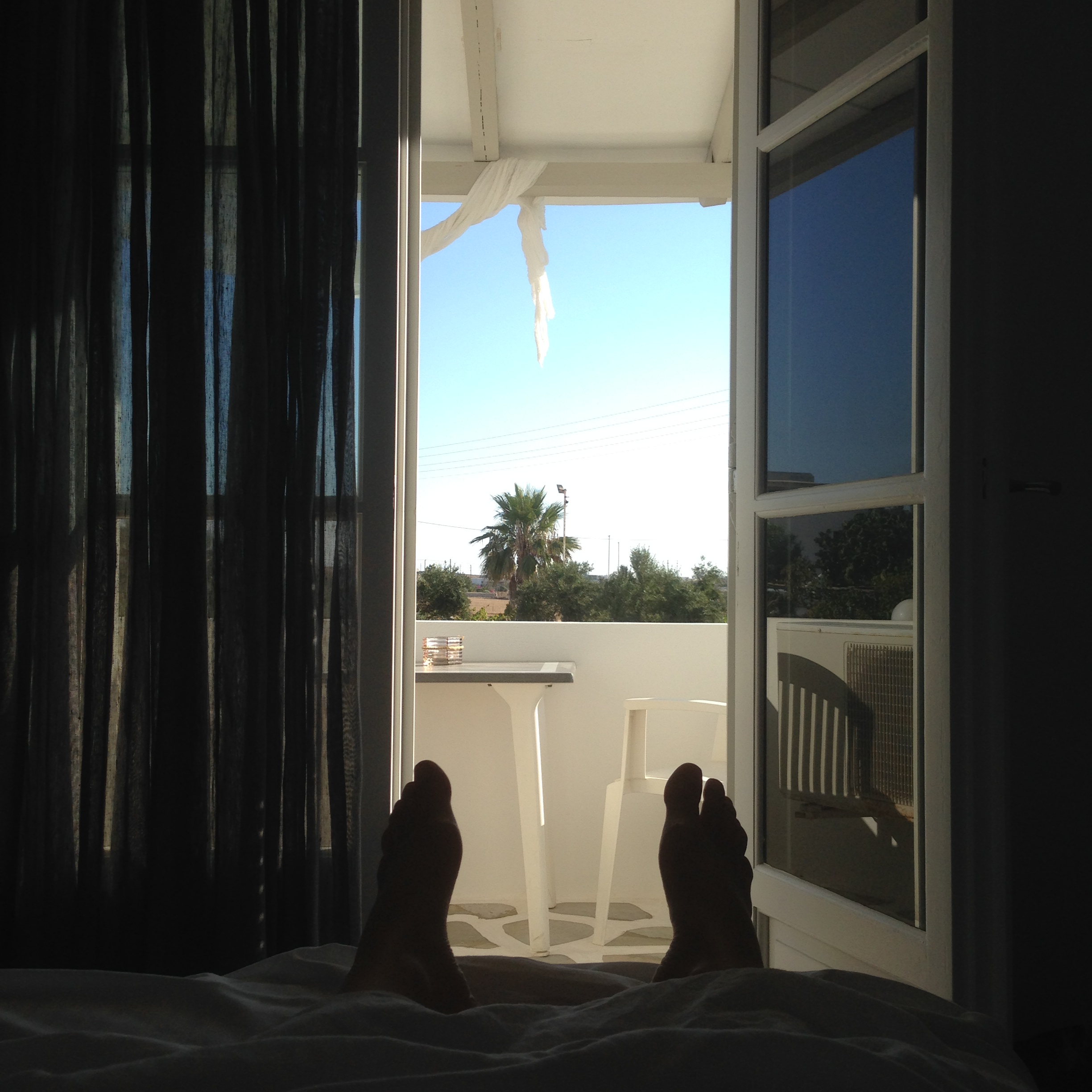 Rummen var rätt stora, med underbar balkong med utsikt mot Naxos. Välstädade, moderna men ändå sådär pittoreska och mysiga. Lavendel på kudden!