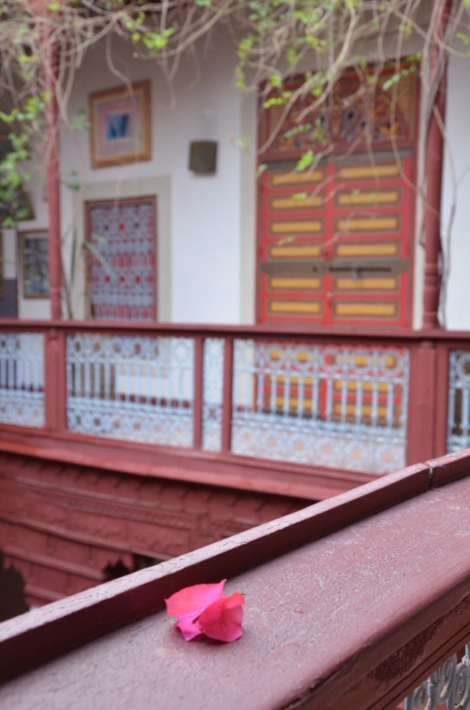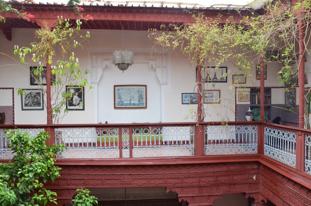 Marockos typiska hus med innergårdar, Riad, skärmar av myllret från staden utanför till en oas. De rika familjernas hus med många rum in mot loftgången används ofta numera som hotell.