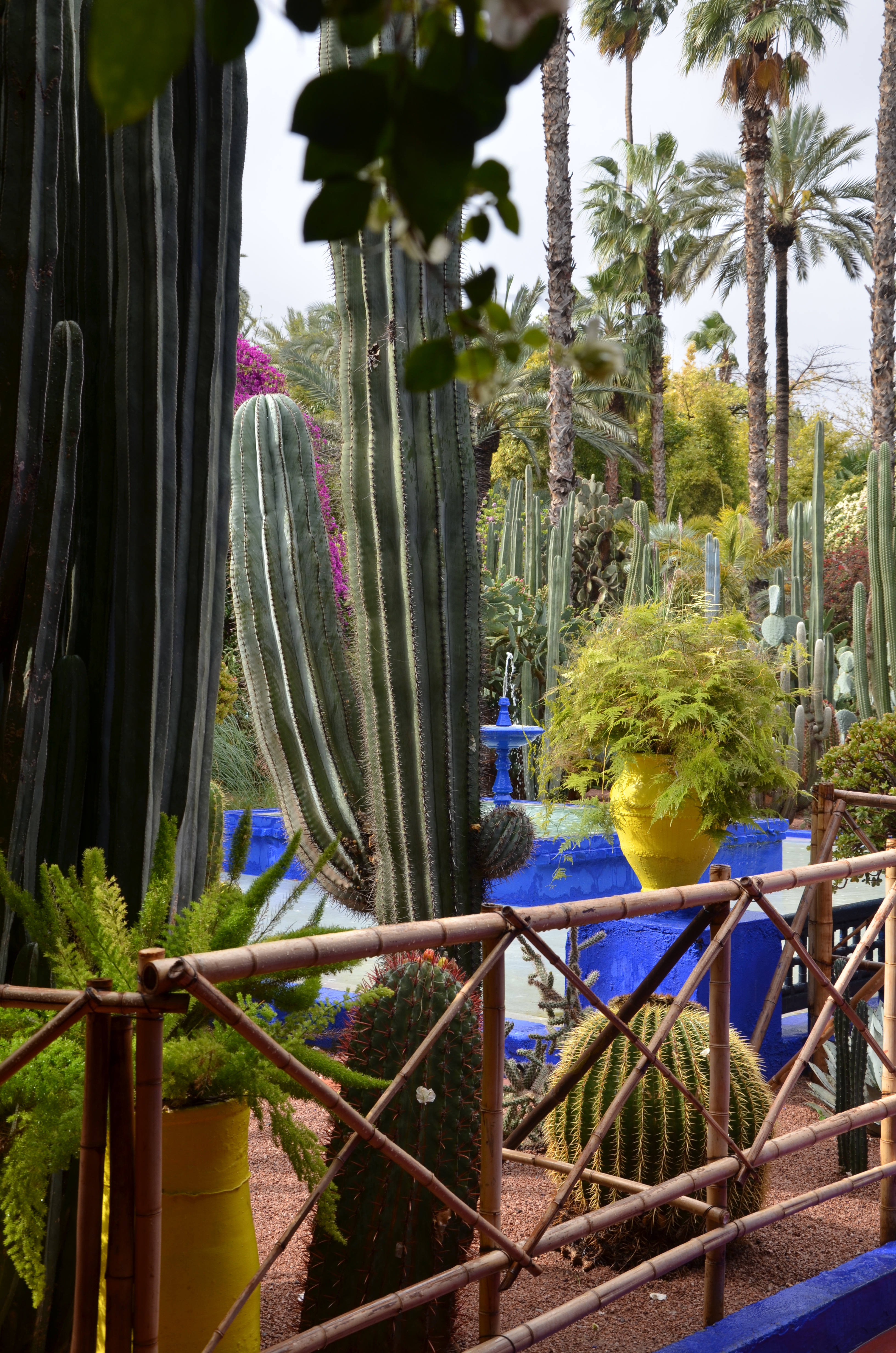 Den anlagda trädgården Jardin Majorelle ligger i Marrakesh och är väl värt ett besök när du tröttnat på shoppingen och myllret. Mycket turister visserligen men lugn och ro präglar trädgården. Färgsprakande och välplanerad trädgård, eller snarare park, som inspirerat Yves Saint Laurent till sina kollektioner. Extra klara färger strax efter regnskur!