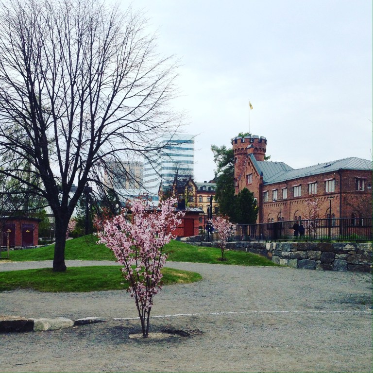På måndagar går eller cyklar jag till mina pass på iksu plus som ligger nere vid älven. Vintertid tar jag samma väg genom stan som jag cyklar till jobbet, men på sommaren cyklar jag strandpromenaden. Den centrala delen av Strandpromenaden har varit avstängd i flera år också på grund av flera olika byggprojekt. Nu är den öppen och jag tycker den har blivit ännu finare än förut. Den är mer rak och tydlig och går cykla och gå längs hela, förut var det en trädgård mitt i alltihop. Jag har stannat upp några gånger och spanat extra, (läs: instagrammat) på vilka kontraster som syns på ett och samma ställe. Åt ena hållet syns några sekel Umeåhistoria och en nyplanterad vårfin buske. Längst bak skymtar 90-talets stolthet hotell plaza (minns ni hur högt vi tyckte det var?! Och det fanns bastu längst upp!). Det gula som syns är gamla stora hotellet, numera nyrenoverat och innehåller gourmetkrog och ett innertorg som binder ihop det med nya Kulturhuset väven, Umeås kanske mest om-tyckta hus. Och så den vackra gamla brandstationen (visst?) i tegel som nu är Filmstaden med Umeås coolaste torn. Inrymmer även Kafé Station där mången gymnasiekvällar spenderades.