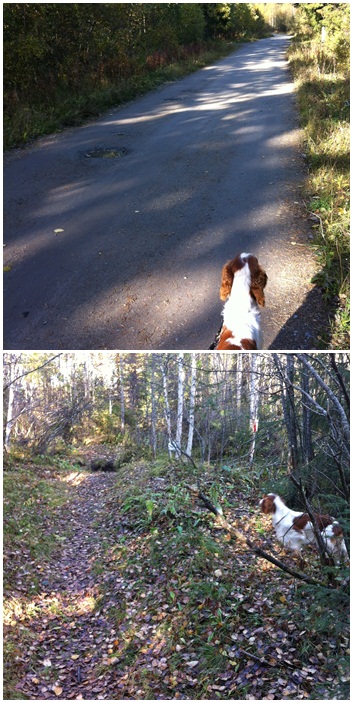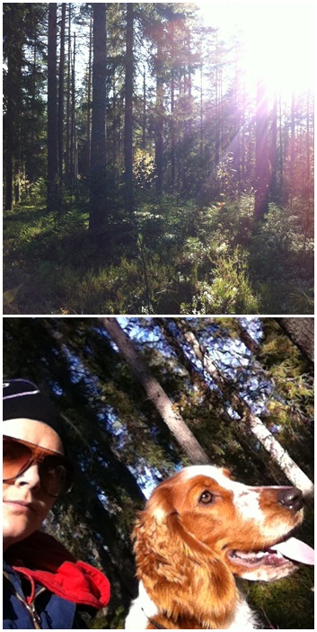 Himmelsk dag med strålande sol, upptäcktsfärd med hunden i skogen, kaffe och insupande av skogsdoft och icke-symmetriska former. Fanns några blåbär kvar att smaka på, såg dock finare ut än vad de smakade. Förvuxna och porösa. Tur jag har frysen full. Dock lite för full. Äter lite glass ikväll bara för det.