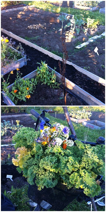 Cyklade till kolonilotten och grävde upp potatisen, plockade in de sista blommorna, plockade grönkål (tips mottages TACKSAMT om vad man i hela friden gör av dem?! Vet inte ens vilken del jag ska ta vara på) och mumsade de sista ärtskidorna och hallonen och plockade de sista blommorna och gjorde höstfint.