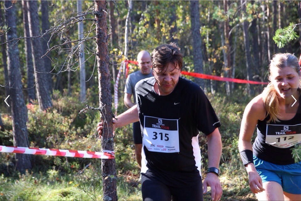 Årets bildserie visar hur det gick till när vi kom springande i lugn och ro i skogen… Intet ont anande, det är jag och strax bakom mig har jag min springkompis Stina, vi hade tänkt springa som lag. Jag hade bra dagsform och var kaxig som hare…