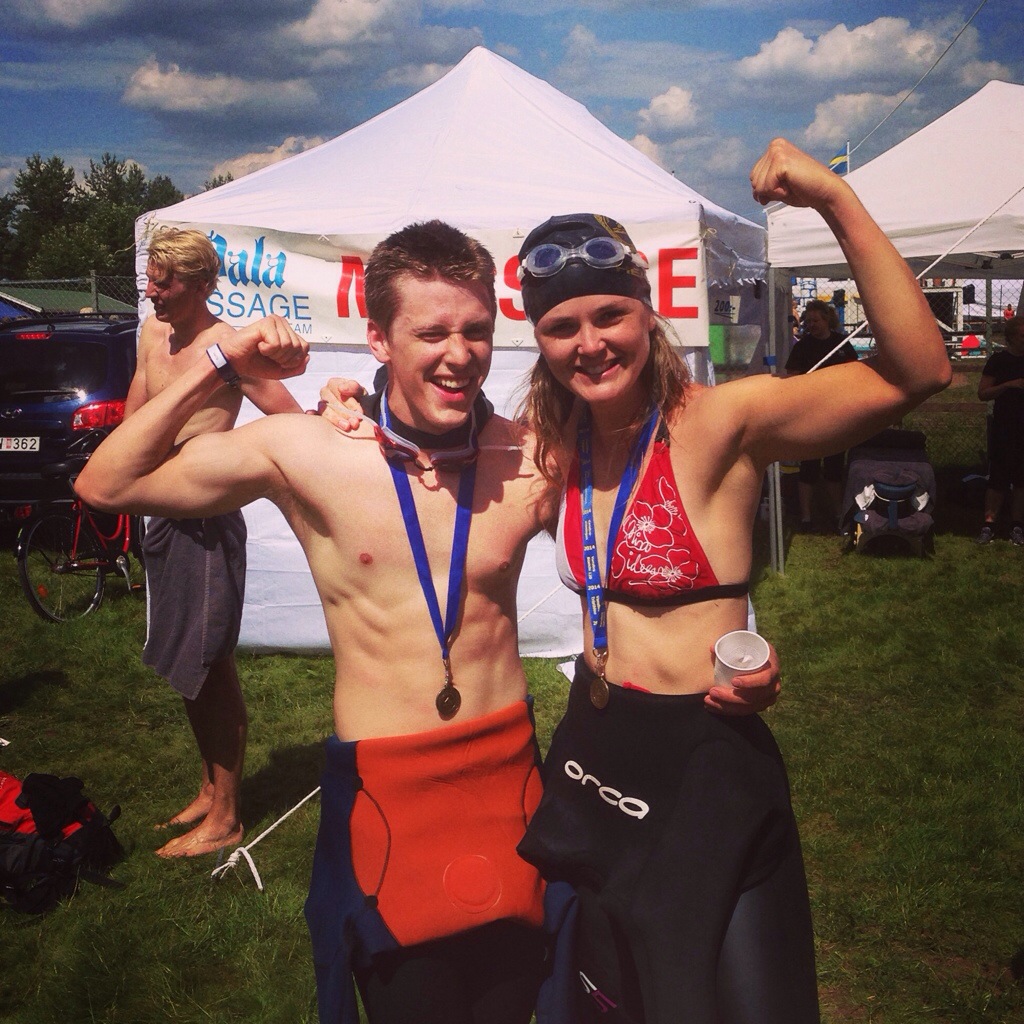 Klockan 10.00 startade eliten och eftersom det är så kort distans och Vansbro är litet och gångavstånd överallt så kunde vi i lugn och ro långt innan vi själva egentligen behövde börja göra oss iordning se eliten simma i mål.