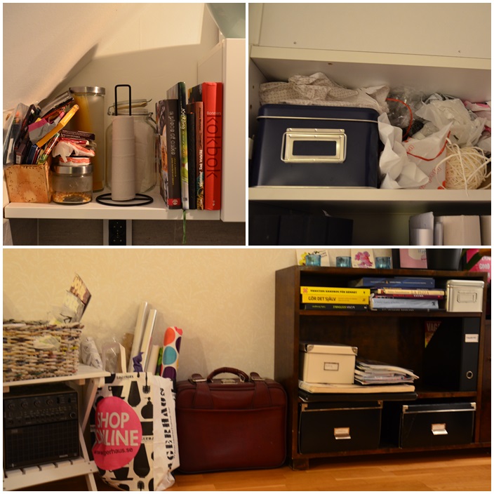 Det är inte svårt att hitta förvaringstips, snarare tvärtom, i minst två av tidningarna jag städade runt bland fanns förvaringsförslag och stora uppslag tips, guider och inspiration. Det gäller bara att tycka det är roligt, eller helt enkelt kavla upp ärmarna ändå, kanske unna sig (när klassas det som missbruk?) lite nya förvaringsattiraljer och lite fantasi.