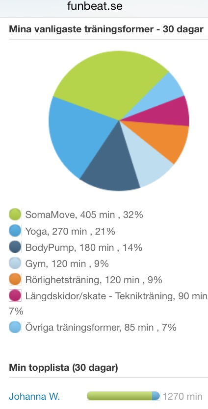 Jag har hållit igång löpningen riktigt bra, jag tog ut lite nördig statistik ur funbeat där jag knappar in allt jag rör på mig (förutom hemmayoga kortare än 3o min). Jag har blivit bättre senaste två åren på att fylla i ALLT och förra året bloggade jag ju om sammanställningarna också vilket känns överkurs i år. Men att kika in och jämföra är kul och det syns tydligt vilket år som är vilket.