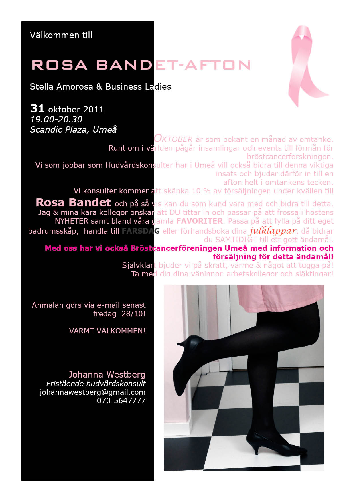 Sist men inte minst: Inbjudan till RosaBandet-afton på plaza, öppet för alla! Anmäl dig och dina vänner, sprid och dela med dig. Bröstcancerföreningen kommer också så det blir en jättemysig kväll! Vi håller till på plaza. Lägger en länk här brevid. Hi-tech ska det vara.