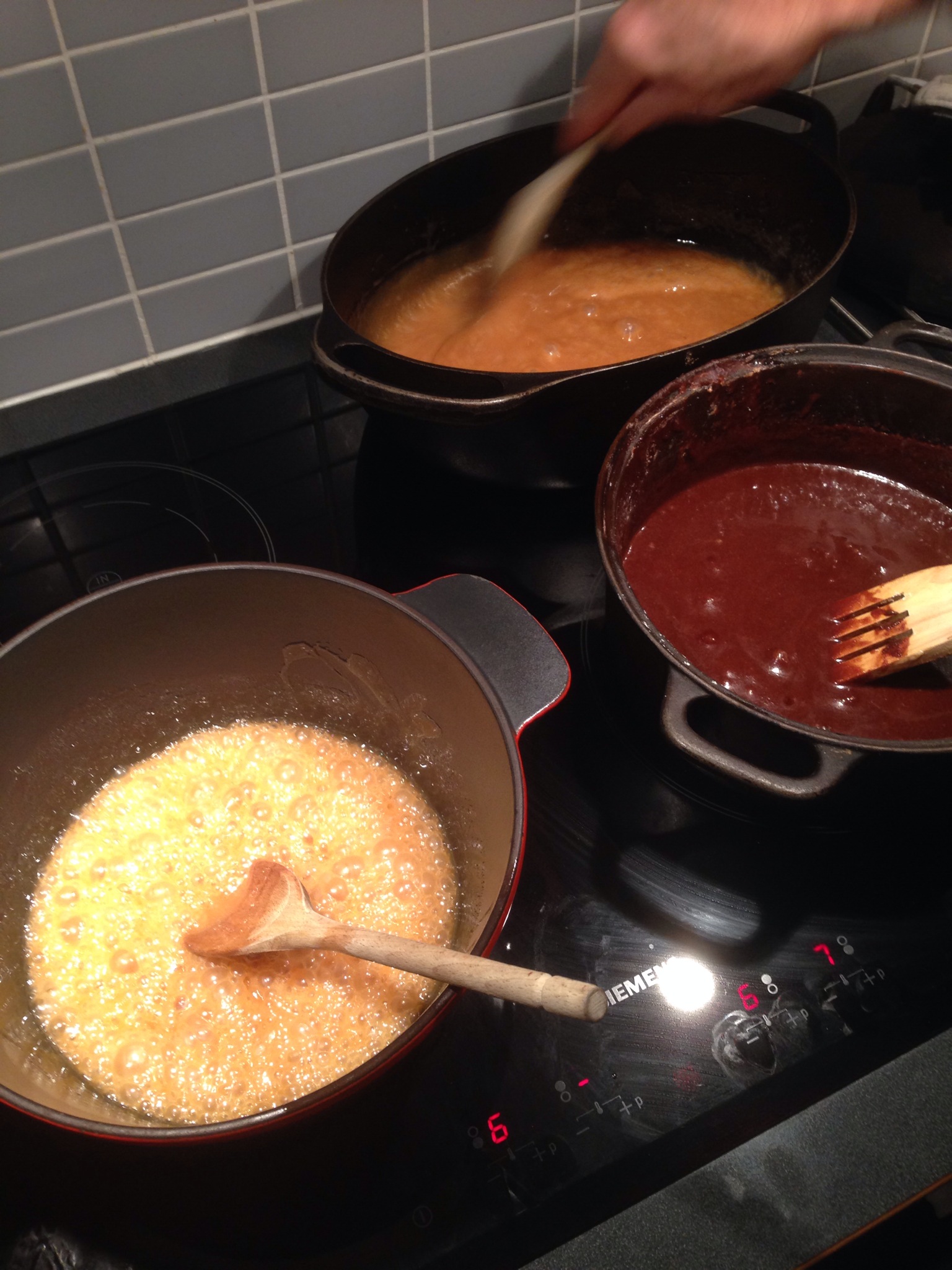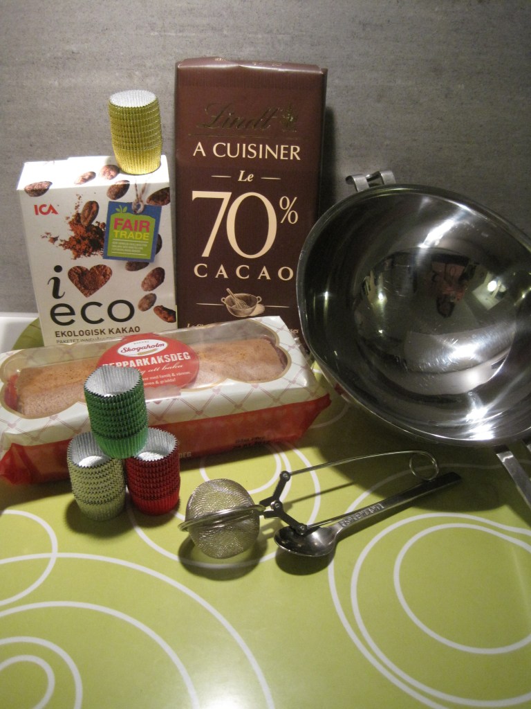 Igår var det dags för det årliga julgodiskoket. Bra avslutning på arbetsveckan och kvällen bara flög iväg, jag minns de här julgodiskvällarna som oändliga då jag var liten. Vi hann ändå med tre sorters fudge, två blev stenhårda och en krämig, knäck, rocky roads och nån slags choklad-cornflakes-kokos-blandning. Det sistnämnda, en fudge och en knäck gjorde vi mjölkfria så jag kan äta dem. Ser att det söks en del på mjölkfritt julgodis så receptet kommer!