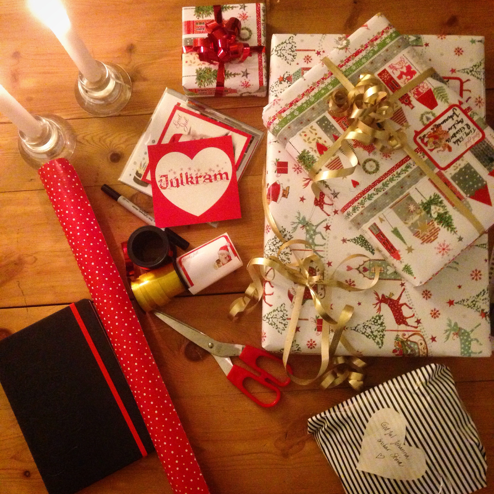 Tänk vad mysigt det är att slå in paket och tänk vad svårt det ska vara att hitta alla skidgrejer varje år!