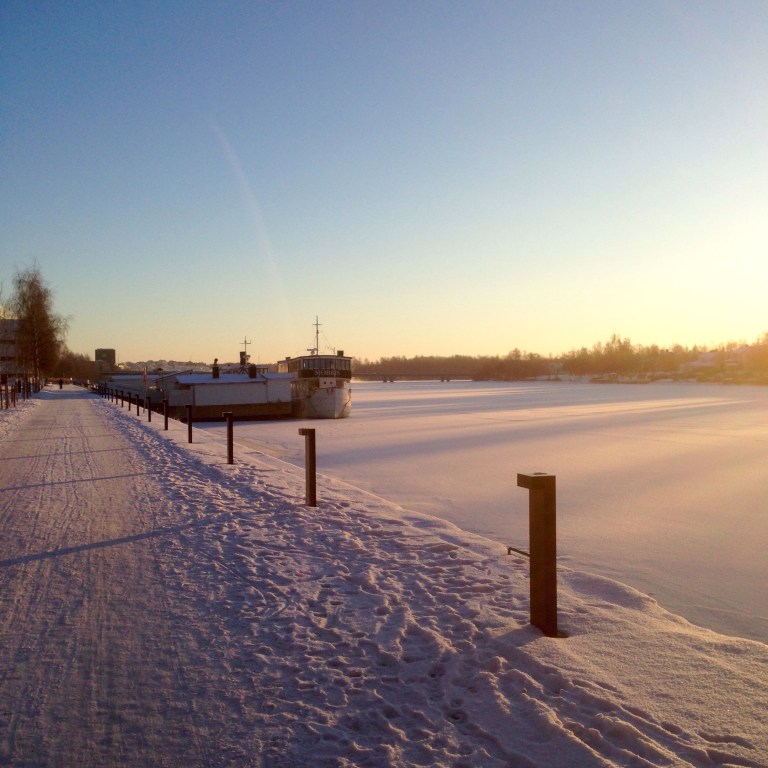 Igår tog jag en promenad i solen för första gången sen i mitten på debember. I Ammarnäs går inte solen upp över fjället från nångång i mitten på debember tills i mitten på januari så det är alltid stor skillnad att komma till Umeå. Strandpromenaden är svårslagen en finvädersdag!