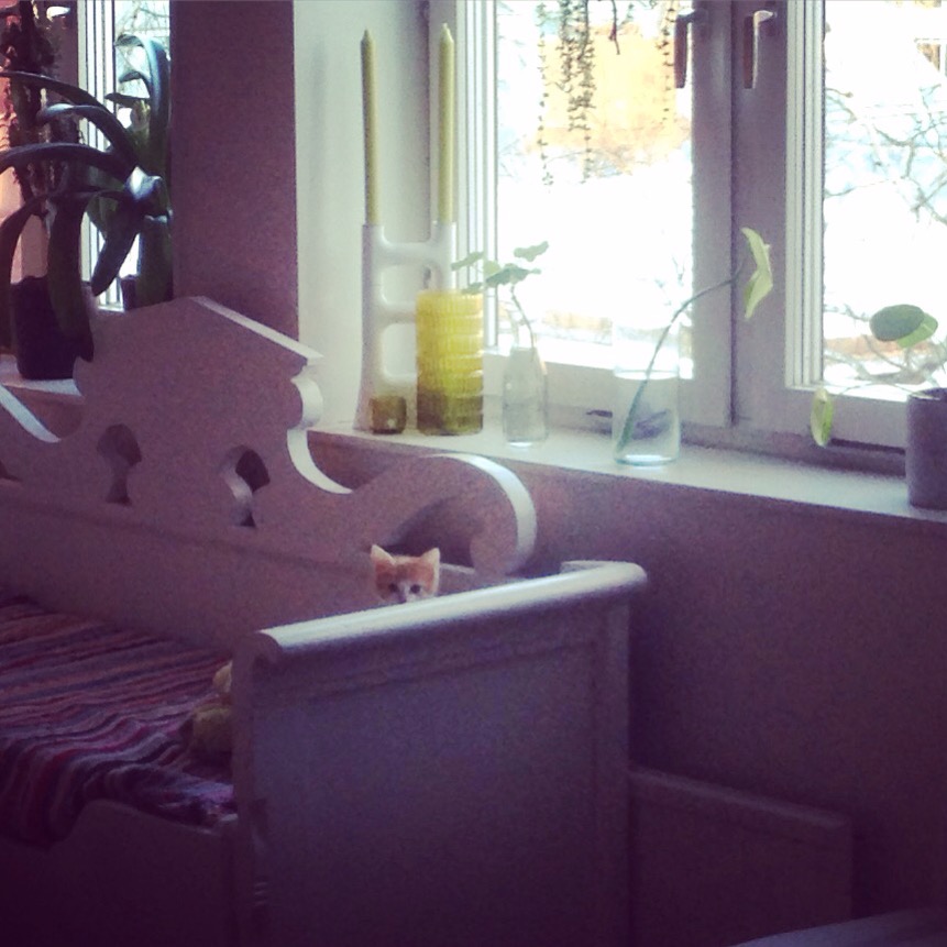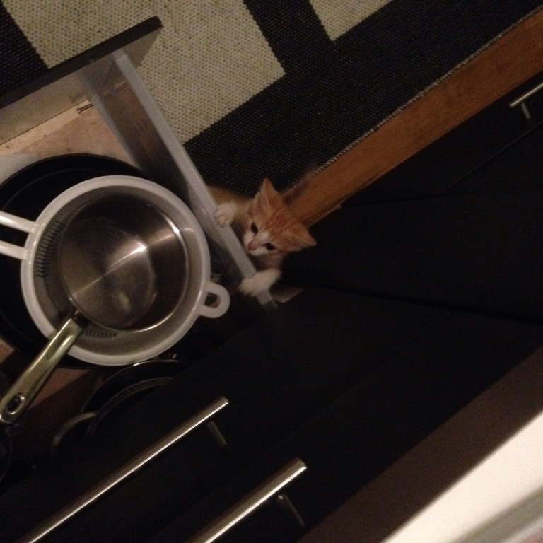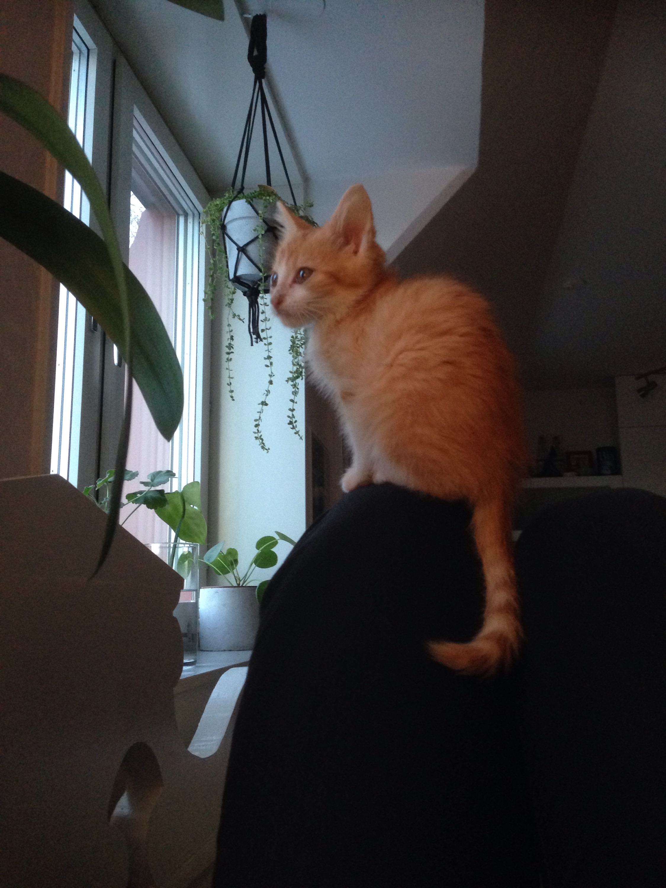 Jamen helgens nyhet då? Jag har skaffat katt! En supersöt liten Charlie som flyttade in i fredags. Jag har hållit utkik ganska länge men katter går åt från blocket ungefär lika snabbt som biljetter till Vasaloppet eller Bruce Springsteen. Men äntligen napp och fick hämta dagen därpå så pang bom, sambo och störtförälskad. Har haft två katter förut men hade glömt hur mycket små kattungar kan klättra.