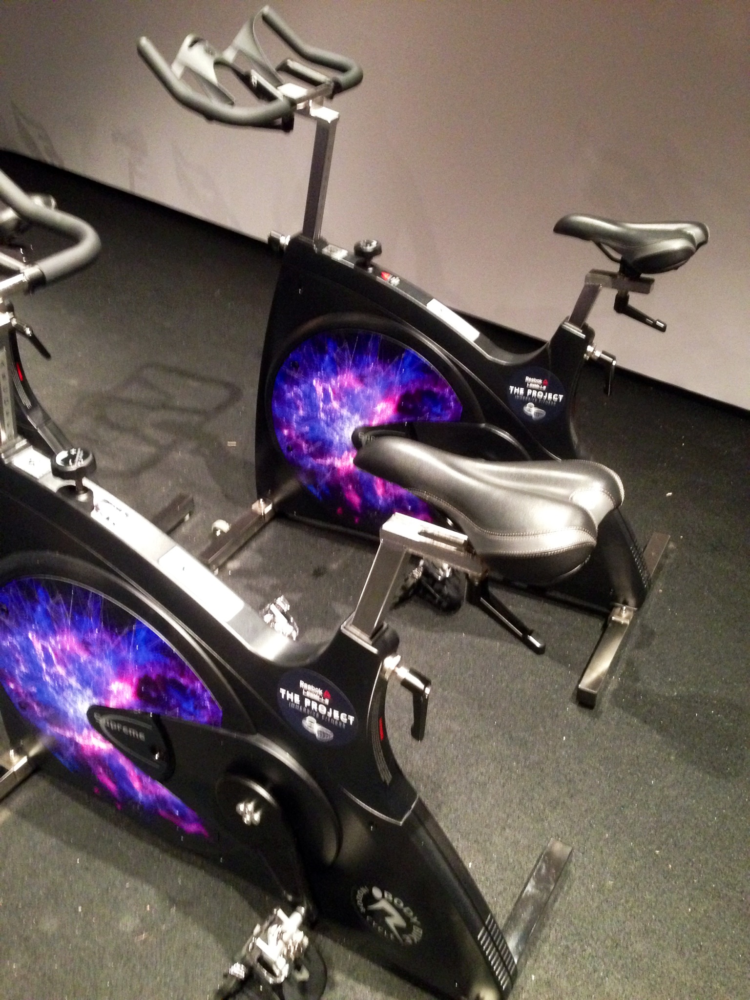 En rum med skärm runtom hela salen som projicerar upplevelsen att träna till. Jag testade The Trip vilket är cykel, så som ett spinningpass i en 3D-bio! Och det var inte några vanliga naturscener heller, utan digitalt. Har ni spelat Mario Kart regnbågsbanan? Då vet ni!