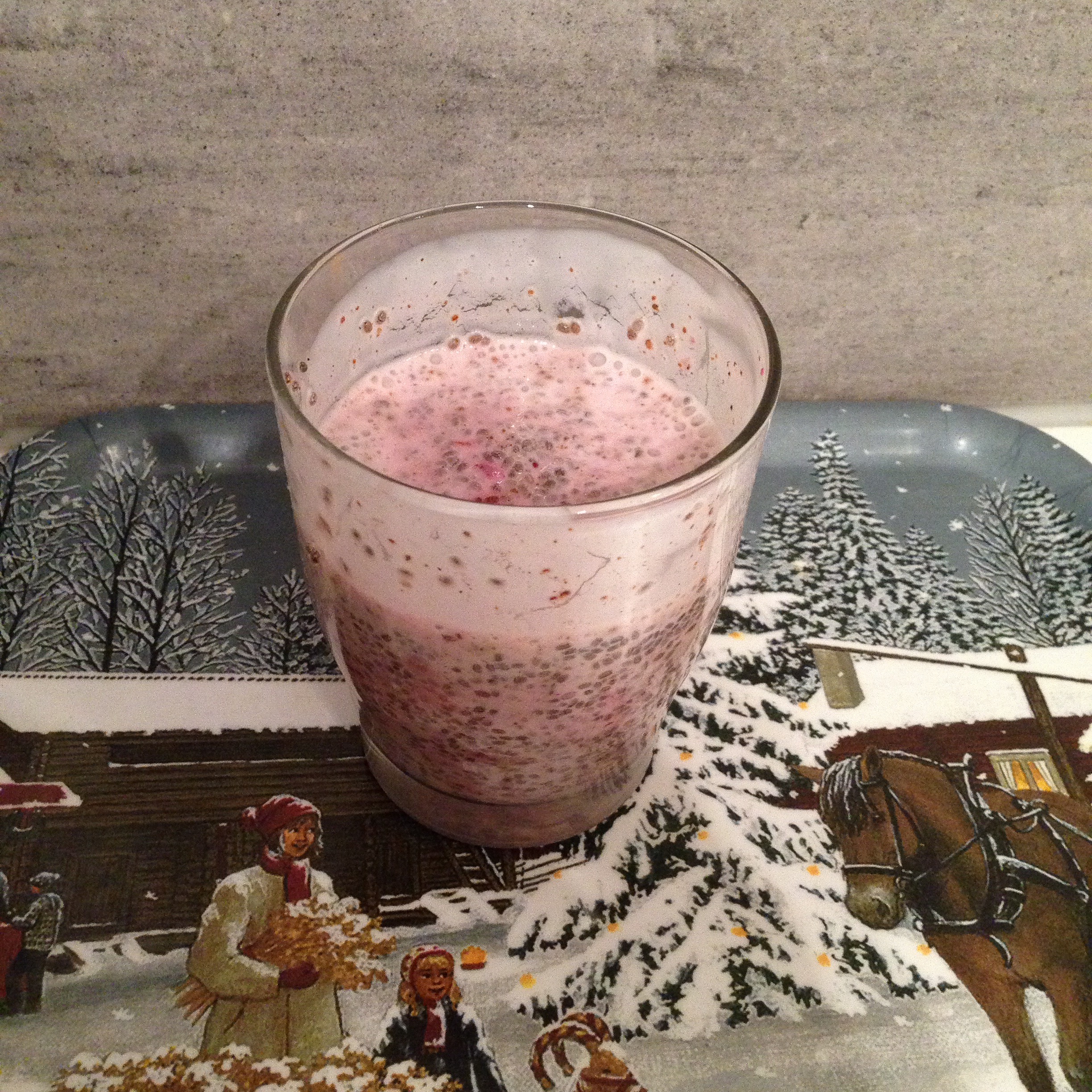 De ser inte mycket ut för världen chiapuddingar men imorse lyckades jag med min bästa någonsin. Det är kylskåpstömning och julstämningsjakt så det blev en spontan chiapudding med: