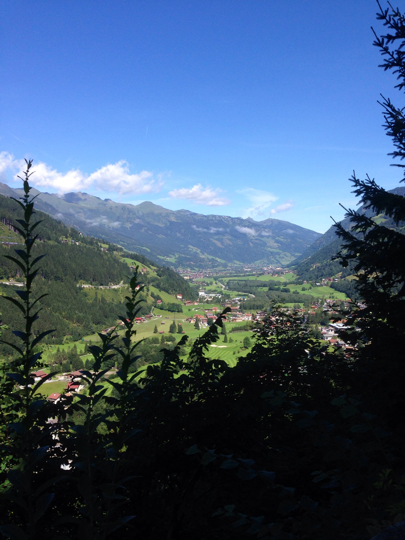 Idag sprack det upp och blev vackert väder och det blev även allvar med löpningen. Vi sprang gemensamt och gjorde lite rörlighet och löpskolning innan vi delade upp oss i fri fart/gummiband och sprang Höhenweg längs med bergskammen (inte längst upp) från Bad Gastein till grannbyn Bad Hofgastein.