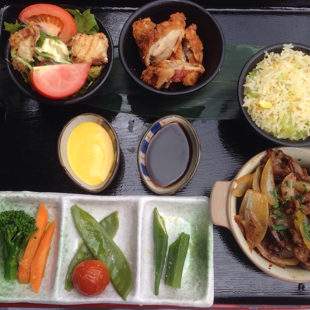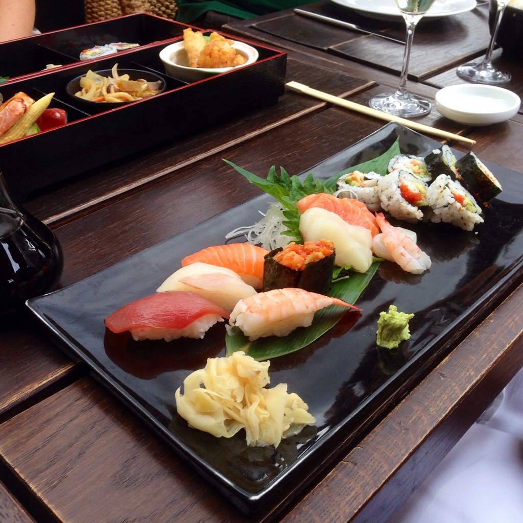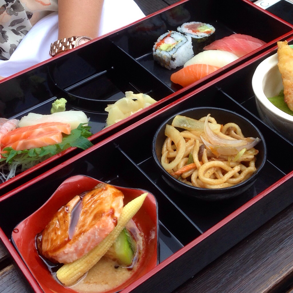 Igår år vi lunch på Noodie, en japansk restaurang inte långt från Majorstuen där vi höll till som mest. Lyxigt dukat och vi hade tur med vädret. Väldigt god och fräsch mat, de hade många rätter som såg goda ut och jag valde för en gångs skull inte sushi utan en kombination, likt dagens (alltså kan skilja från dag till dag), en asiatisk lunchlåda. Snyggt upplagt också!