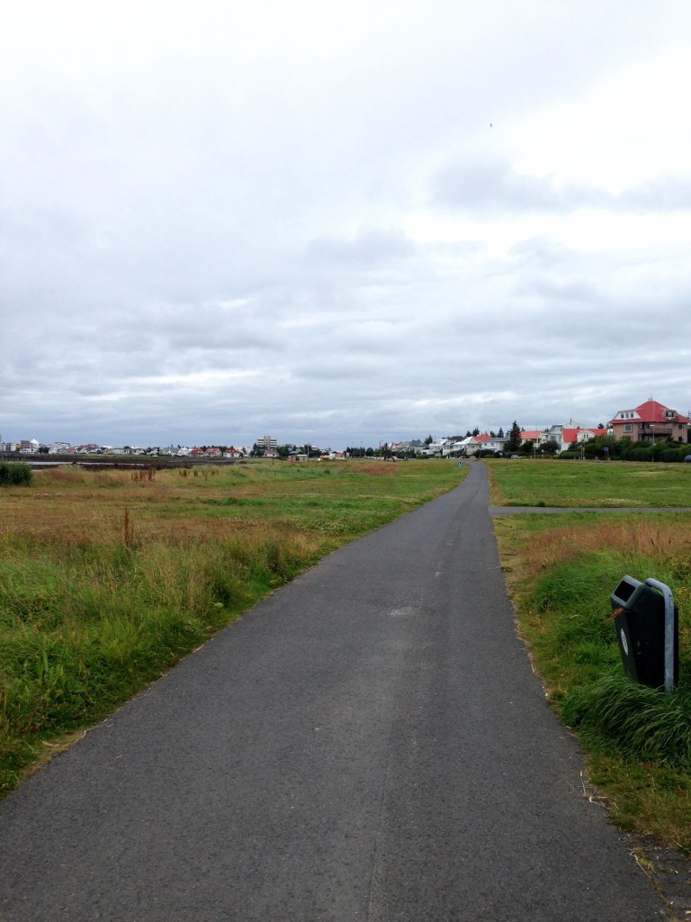 Bilden visar Sólfar, ett konstverk på strandkanten nära konserthuset Harpa en bit från hamnen, rakt nedanför gågatorna med shopping och caféer. Allting är nära och efter en stund i eftermiddag helt själv med kartan så börjar Reykjavik ha landat för mig. Jag har sett det jag hoppades på så jag passade på att gå hem och ta en till löptur på strandpromenaden, denna gång Almenäsintervaller (10*1min) och se stan och havet från det hållet.