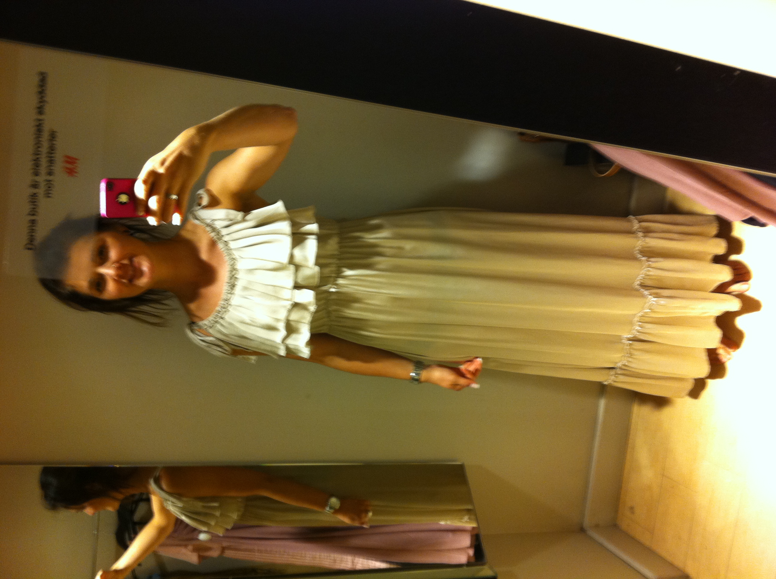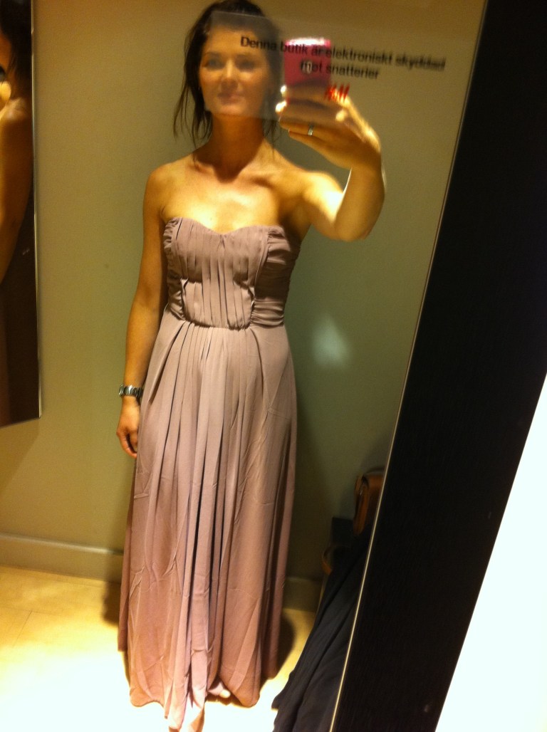 Testade det här med provrumsbilder. Måste säga att det är ingenting jag tränat på eller hoppats på att nånsin behöva göra. Men nu börjar det likna lite panikartad stress för att hitta en bra, lagom dyr, snygg aftonklänning tills nästa fredagkväll. Det visade sig att det finns ungefär NOLL fina, en dyr och ful och några på H&M.