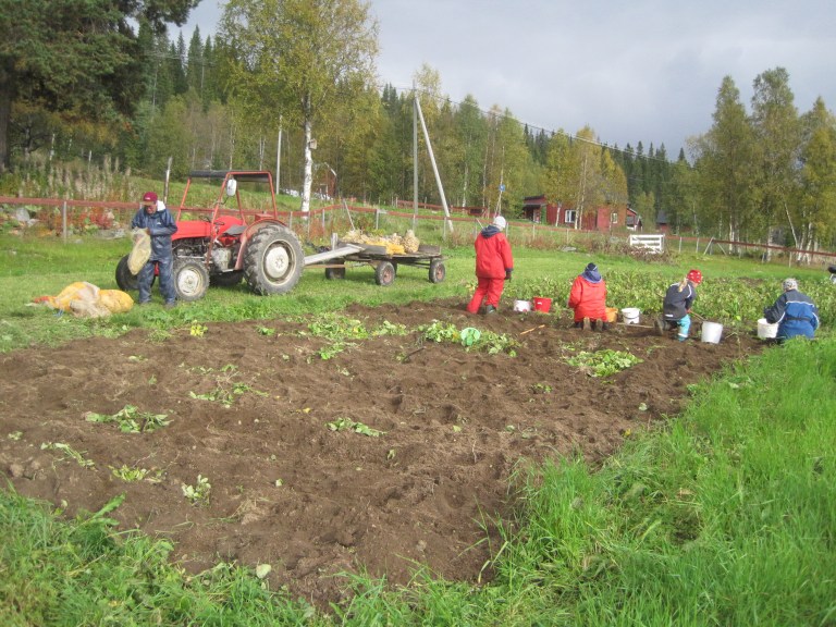 Vi har gjort allt man kan önska en hösthelg i fjällen, löven har varit gula, luften klar och lite regnig. Grävt pären, plockat kantareller, plockat lingon och gjort sylt, sovit i nya friggestugan, kört traktor, lekt med hundar och barn, gått upp på potatisbacken och tittat på utsikten, ätit utflyktsfika, åkt till talludden, haft lövtävling i ån, hälsat på momme, ätit middag allihopa i storstugan, lekt ord- och sånglekar i bilen….