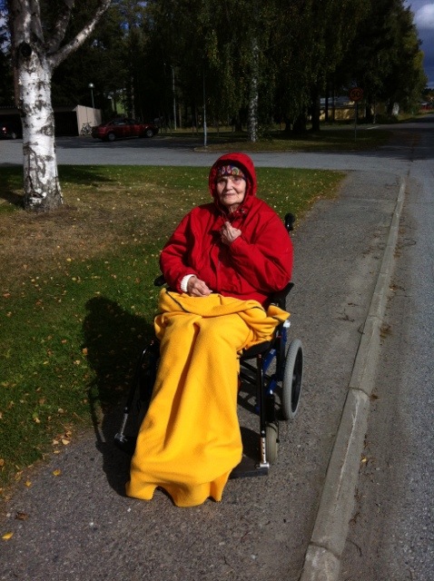 -”Nej men jag kan ju skjutsa dig i rullstolen, det är ju så fint väder”