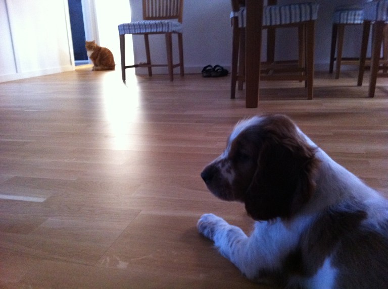 I stugan var även kusin med barn, mostrar, kusiners farfar och fru, momme såklart, nån till moster såklart, morbröder kusiner och ja ni hör…. och det är då det är som roligast. Och valpen också såklart, och de är bästa kompisar hon och sexåringskan så de har lekt och tränat hela helgen och gjort dunderstora framsteg i att bara vara lugna ihop, mysa, sova medan den andra gör nåt och så.