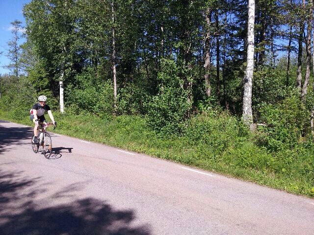 Lars ryckte lite och plötsligt var jag helt själv på en av de mindre vägarna. Ingen trafik, inga cyklister varken framåt eller bakåt och precis då insåg jag vad jag höll på att göra. Bara några mil ifrån att ha cyklat hela vätternrundan tillsammans med nästan tjugo tusen andra cyklister och ändå fick jag en liten bit alldeles för mig själv. Jag kan säga att jag gav insupa omgivningarna och carpe diem ett ansikte just där och då. Solen gassade, vindstilla, fågelkvitter, böljande gröna ängar med söta röda hus på och så bara jag som cyklade på en liten slingrig väg. Sen såg jag honom, han hade bara känt för att ta ett foto, det första och enda vi tog på hela resan.20140616-174305-63785571.jpg