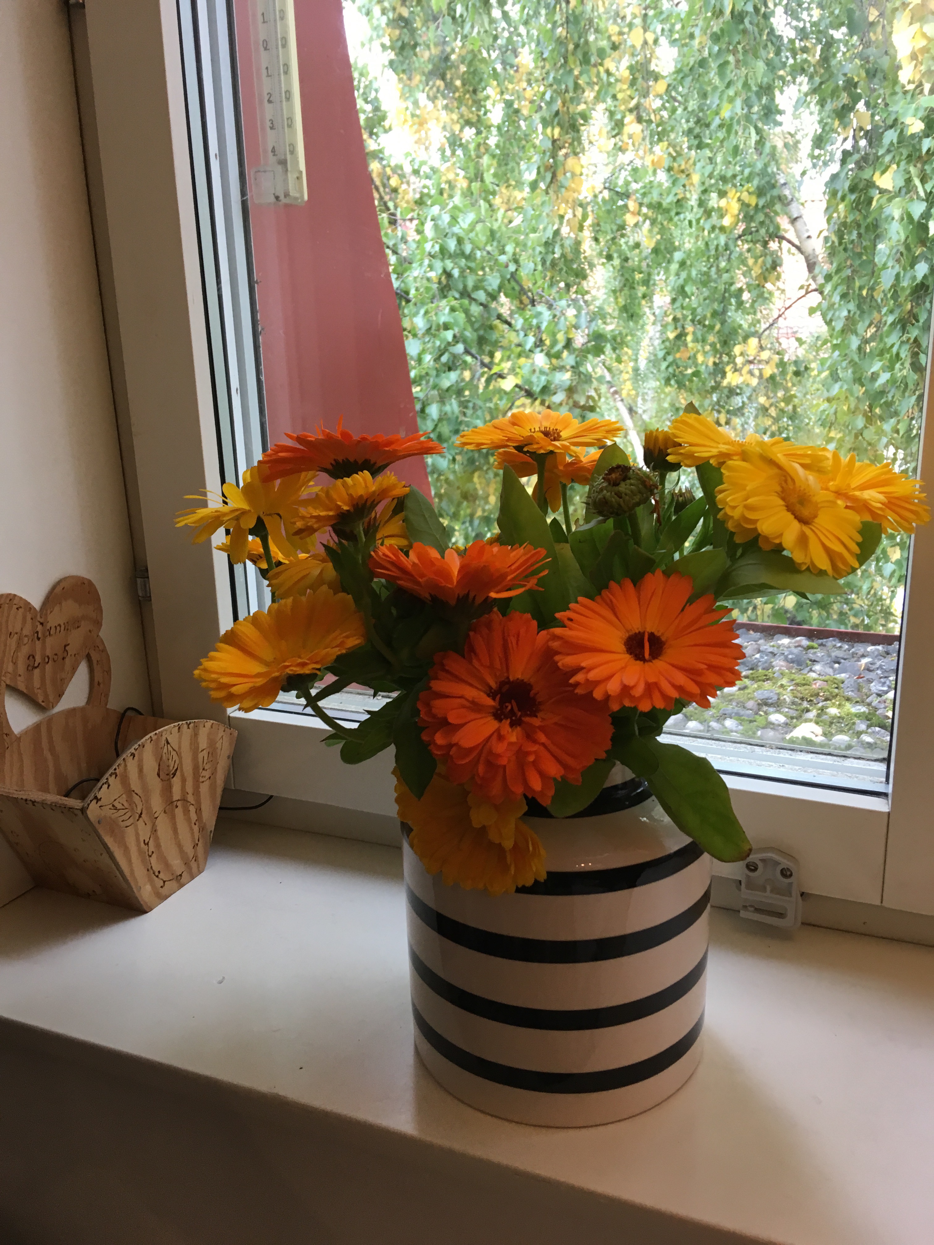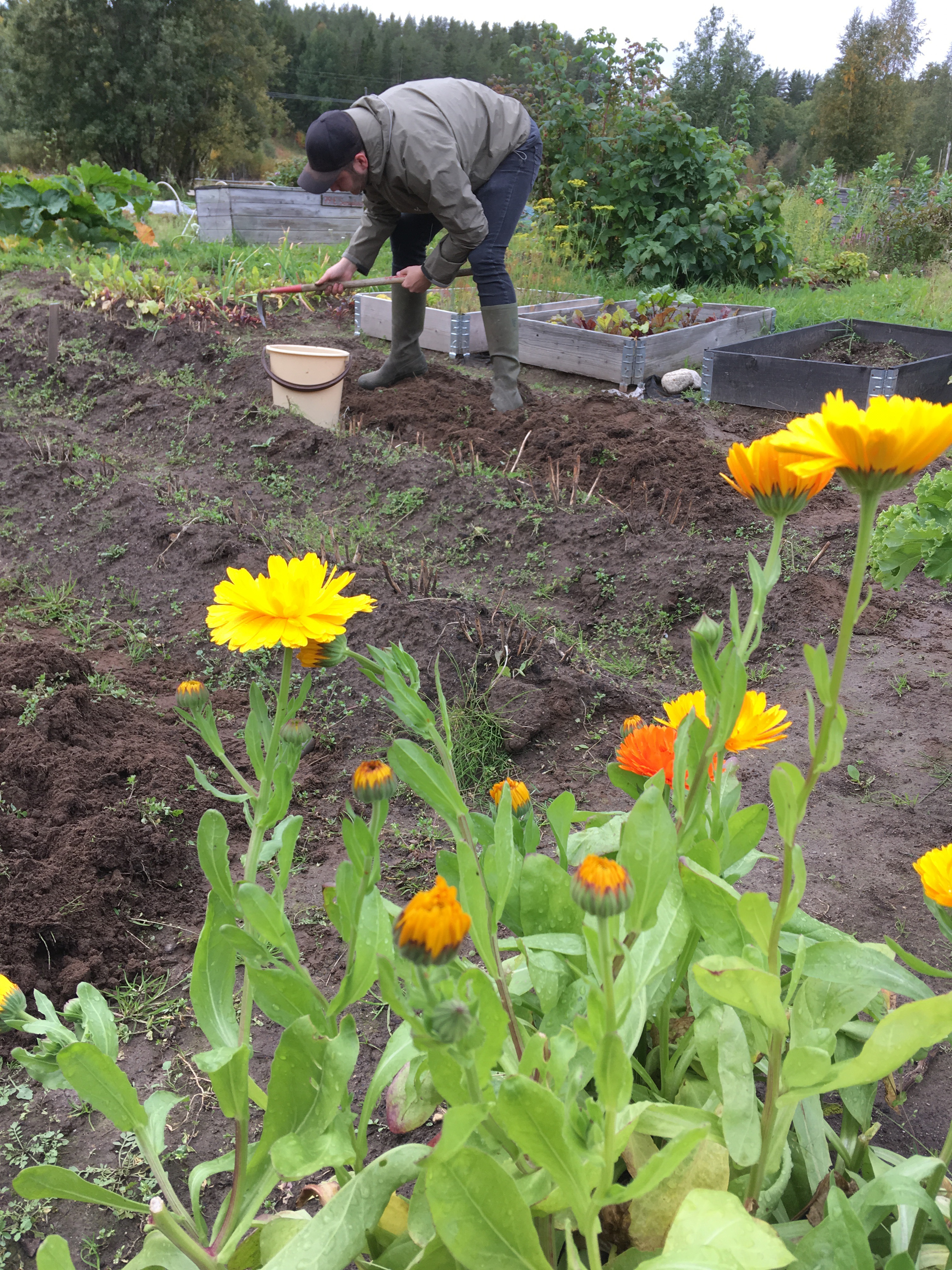 Hösten är ju skördetider så vi har varit på kolonilotten hela familjen och hjälpts åt att plocka hallon, potatis och ringblommor.