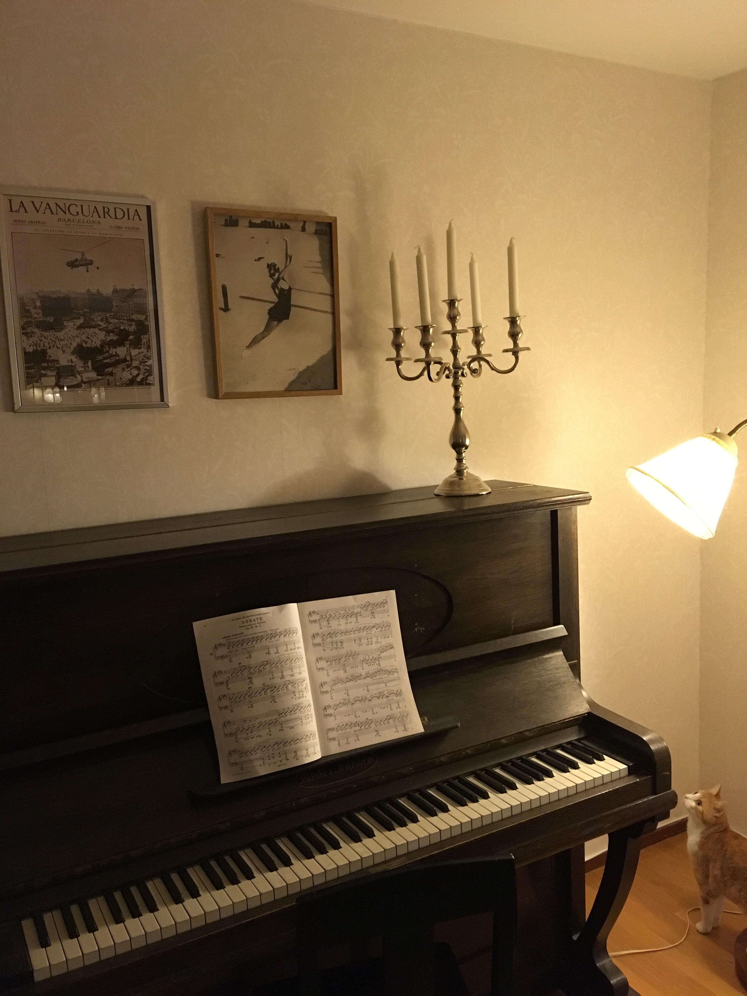 Jag köpte en present till mig själv jag suktat efter länge som belöning, en kandelaber från Indiska. Hur bra passar den inte på mitt piano?